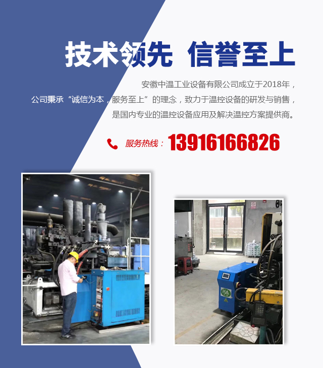 安徽中溫工業(yè)設(shè)備有限公司成立于2018年,公司秉承“誠(chéng)信為本,服務(wù)至上”的理念,致力于溫控設(shè)備的研發(fā)與銷(xiāo)售,是國(guó)內(nèi)專(zhuān)業(yè)的溫控設(shè)備應(yīng)用及解決溫控方案提供商。